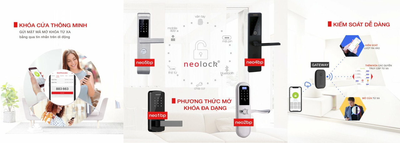 Neolock ra đời nhiều dòng khóa cửa thông minh cho cửa gỗ, cửa nhôm, cửa kính... với mục đích giúp đỡ mọi người quản lý nhà cửa và tài sản dễ dàng hơn. Chủ nhà có thể quản lý căn hộ của mình từ xa, thông qua ứng dụng được cài đặt trên điện thoại.
